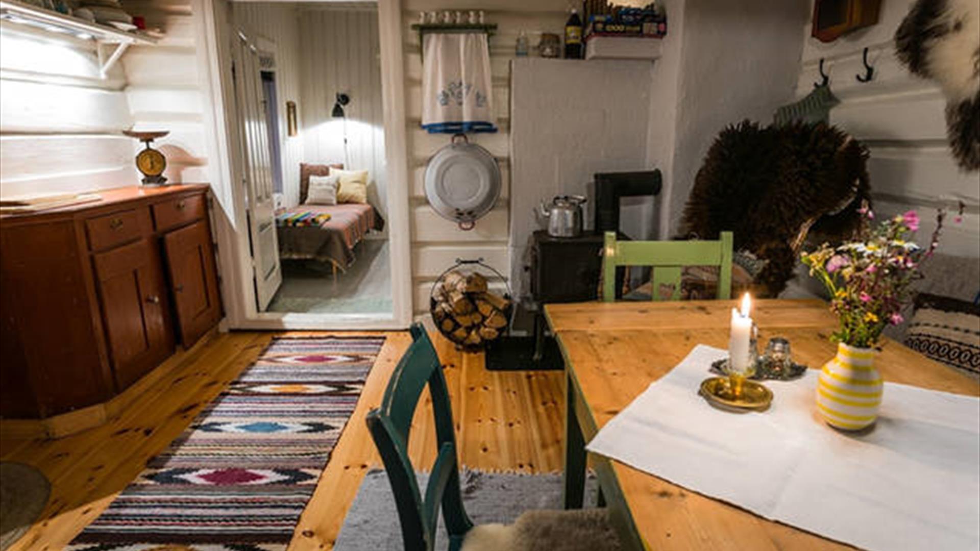 Det er 3 rustikke og koselige hytter til leie på gården, omringet av en velholdt og frodig hage med drivhus, frukttrær og bærbusker. Bygningene er fra 1800-tallet og er innredet med stor omtanke og nostalgi.