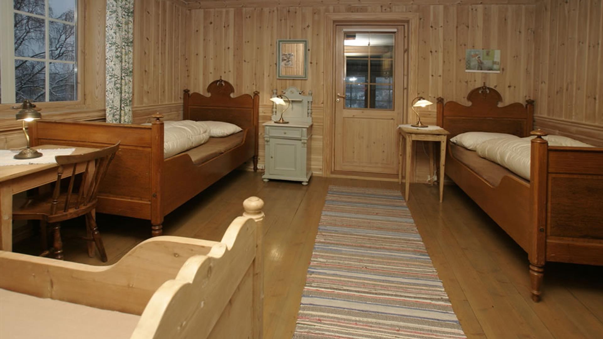 Gården har vært i familien siden 1849 og har lange tradisjoner som skysstasjon og pensjonat fra 1876 til 1926, og overnatting fra 1965. Motellbygget vårt inneholder 12 små leiligheter med sengeplass til 4 personer (2 køyesenger), dyner og puter, sittegruppe, håndvask, kjøkkenkrok med kokeplater, kjøleskap og litt ustyr. Det er felles dusjer om toaletter i gangen rett på utsiden av leiligheten. Ute på det romslige gårdstunet er det huskestativ, sandkasse, stor sklie og trampoline for barna. Vi har også en utegrill under tak som du kan låne hvis du vil. Vi har bare en katt på gården nå, men noen uker om sommeren beiter det kuer med kalver her. Er du heldig kan du også få øye på både rådyr, elg og hare.