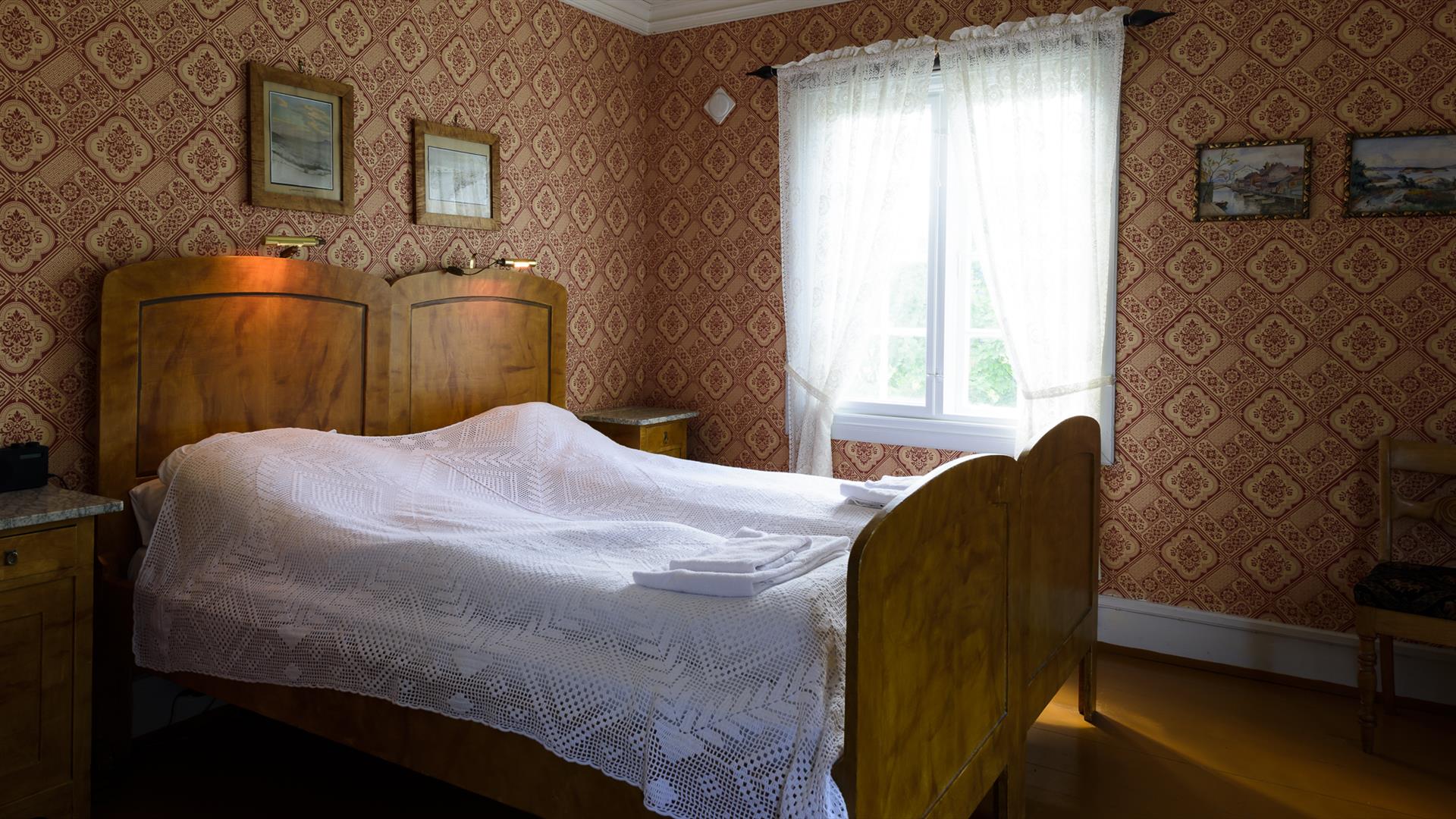 Overnatting tilbys i 12 gjesterom med totalt 24 (28) sengeplasser, alle med egne bad, fordelt på hovedgjestehuset fra 1850-tallet, en eldre hovedbygning fra 1600-tallet og ei «drengstue» ombygd i 1860 og to andre historiske bygninger. Det er en minneverdig opplevelse å sove i disse rommene med høy antikvarisk verdi. «Drengstua» på totalt 60 kvm leies ut som «suite» hvor man kan være for seg selv, fyre på den store gråsteinspeisen og sove i skapsenger.